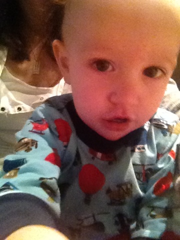 Malte fick igår för första gången på sig Albins fd flygplanströja. Den har legat och väntat i garderoben ett tag, för liten för Albin men för stor för Malte. Albin kände tydligen igen den i alla fall för han tyckte att "Å, den tröjan hade jag när den var större!" Försökte mig på alternativet att det kanske var Albin som växt, inte tröjan som krympt, men det örat ville han inte lyssna på!